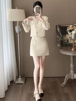 高级感白色小香风外套短裙套装秋装新款小个子修身显瘦气质两件套
