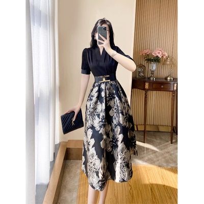 高级感黑色鱼尾包臀连衣裙气质修身显瘦女夏OL职场通勤赫本小黑裙