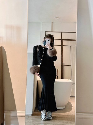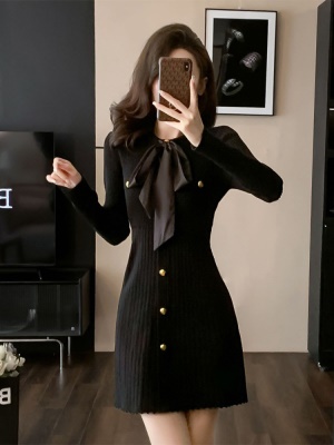 小香风针织毛衣连衣裙修身法式赫本风小黑裙小个子配大衣打底内搭