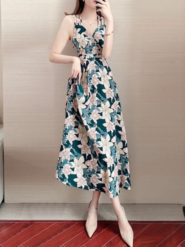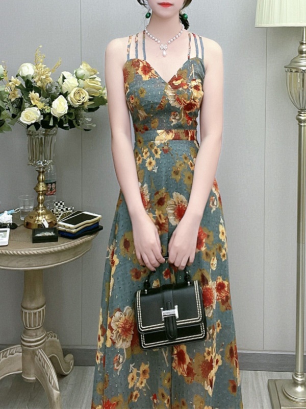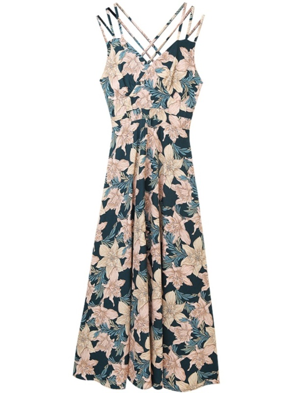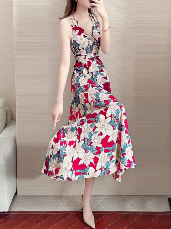 碎花吊带连衣裙女夏2025新款名媛气质海边沙滩度假露背显瘦长裙子