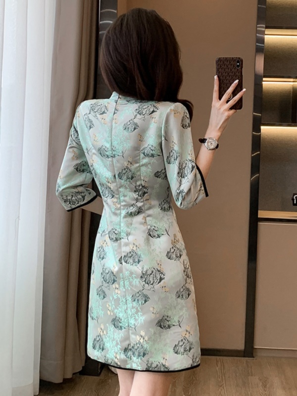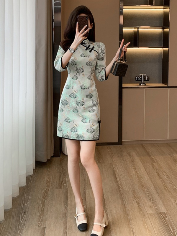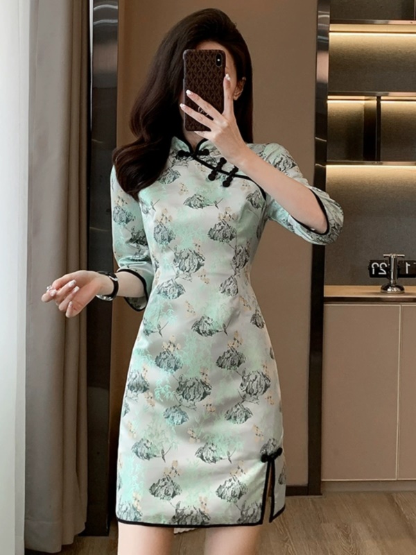 商品名称:国风女装中式旗袍连衣裙2025春季新款小个子气质修身包臀裙高级感