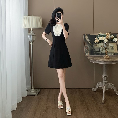 小香风千金连衣裙女夏季2025新款高级感气质显瘦赫本风生日小黑裙