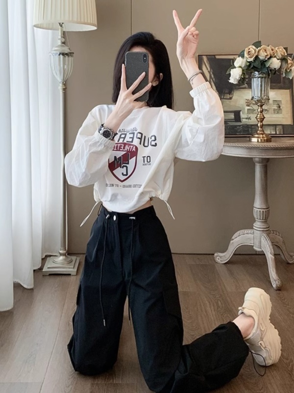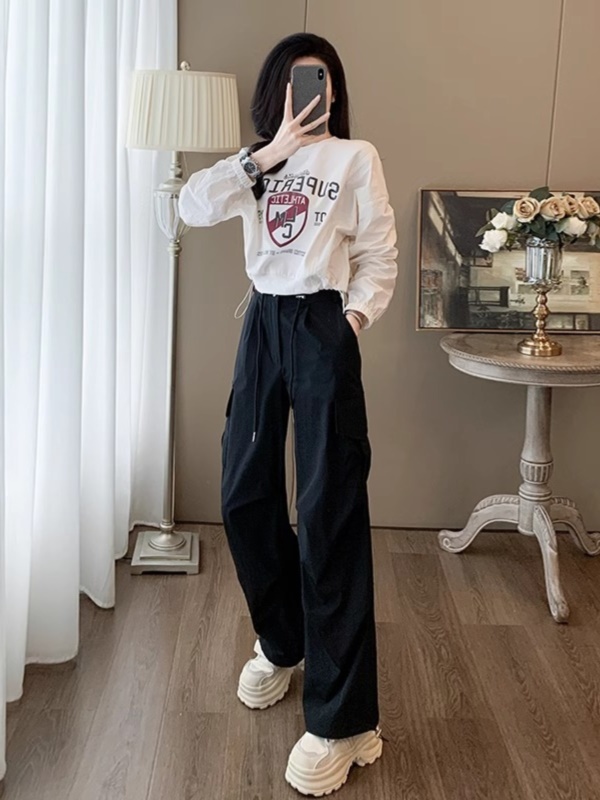 [颜色分类:白色上衣+黑色裤子 尺码:S]