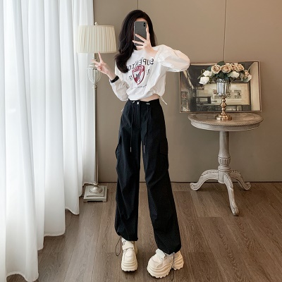 商品名称:2025春季新款时尚穿搭运动套装女宽松洋气休闲卫衣工装裤两件套潮