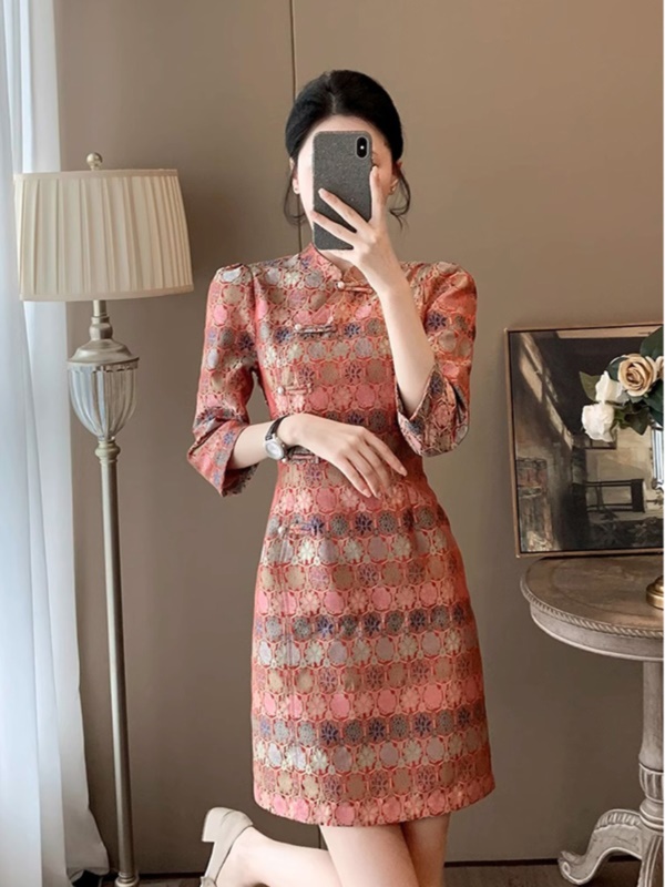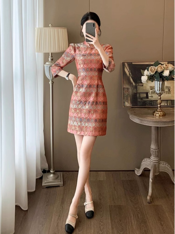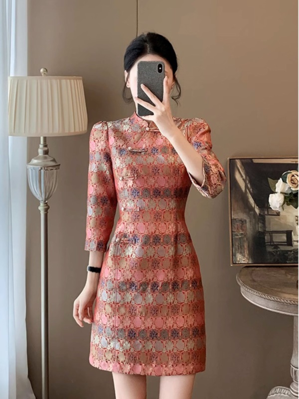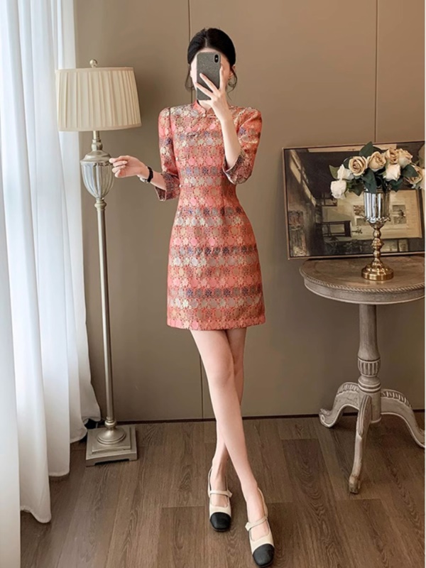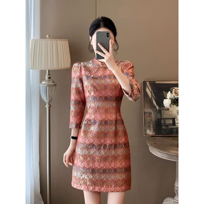 新中式改良旗袍连衣裙女高级感小个子修身显瘦气质轻奢国风小礼服