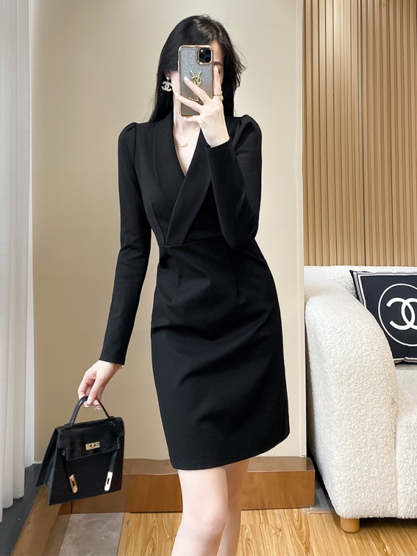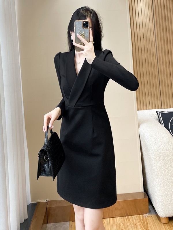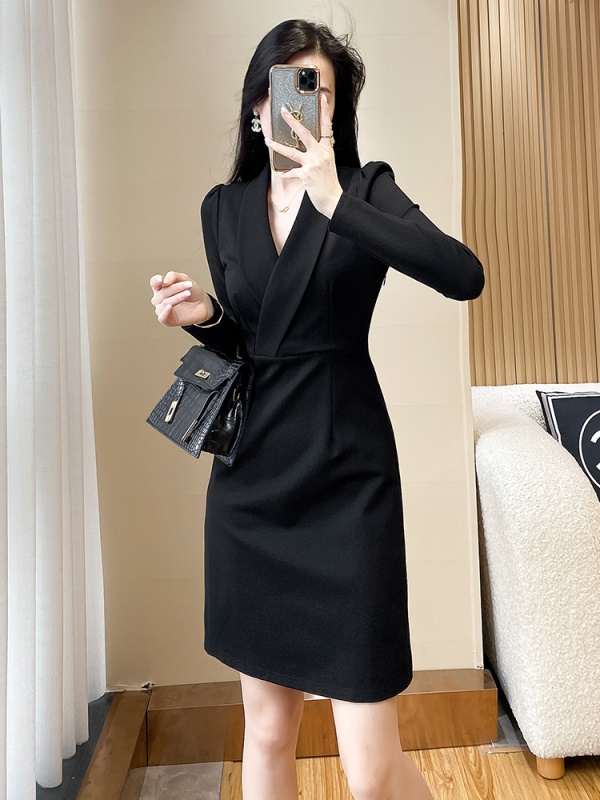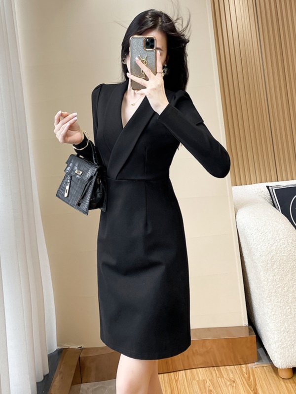 黑色西装裙2025年春季新款女气质显瘦高级感V领职业连衣裙小个子