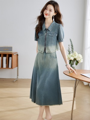 薄款短袖牛仔套装裙女2025夏装新款欧美高端奢华大牌小个子两件套