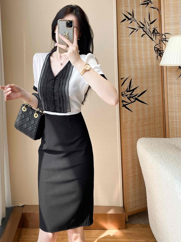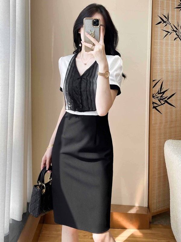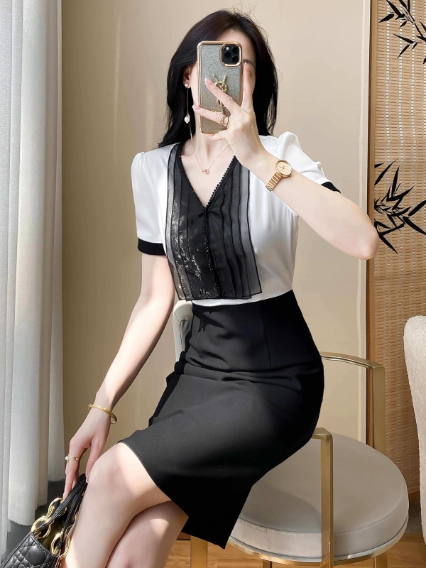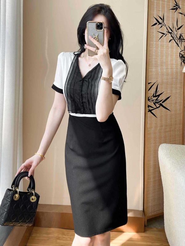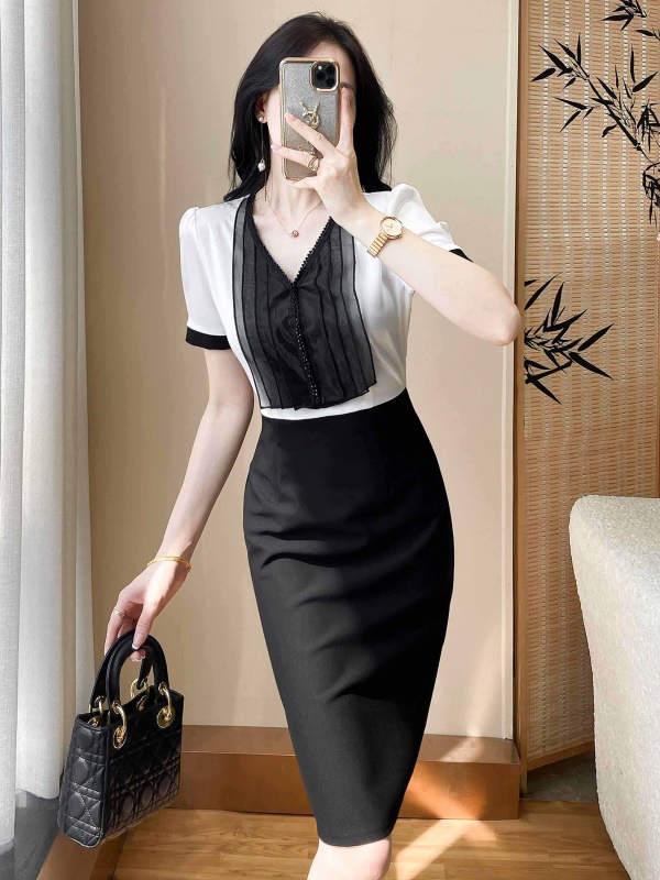 2025夏季新款时尚气质衬衫拼接连衣裙显瘦高级感通勤OL职场包臀裙