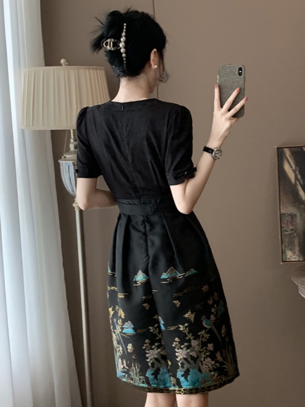 高端黑色新中式连衣裙夏季国风女装2025新款气质刺绣改良马面裙