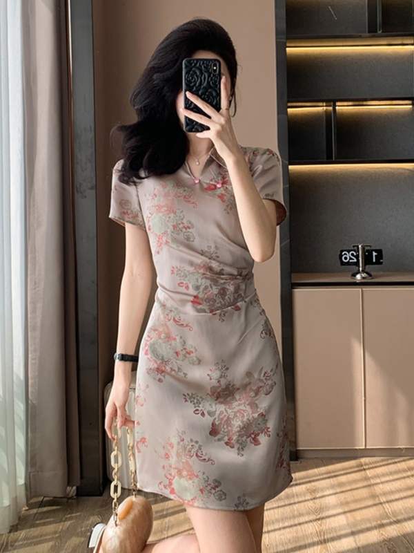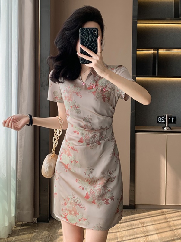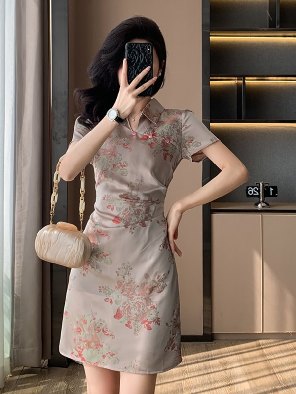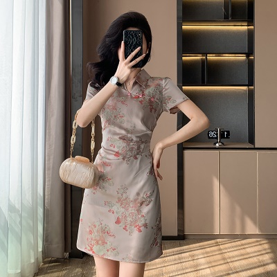 早秋新款国风女装连衣裙小个子高级感新中式气质收腰显瘦旗袍短裙