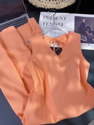 春夏季法式高腰垂坠感背心长裙子小众别致甜辣妹橘色无袖连衣裙女