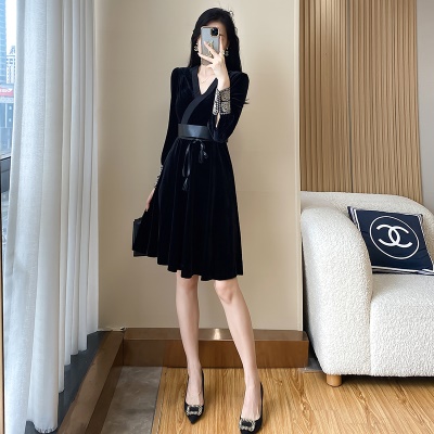 晚礼服轻奢小众高端女黑色丝绒连衣裙宴会气质高级感赫本小黑裙秋