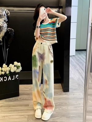 多巴胺休闲时尚套装女夏季穿搭洋气减龄彩虹短袖牛仔阔腿裤两件套