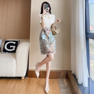 高级感国风短袖碎花连衣裙小个子气质收腰显瘦改良旗袍裙子女夏天