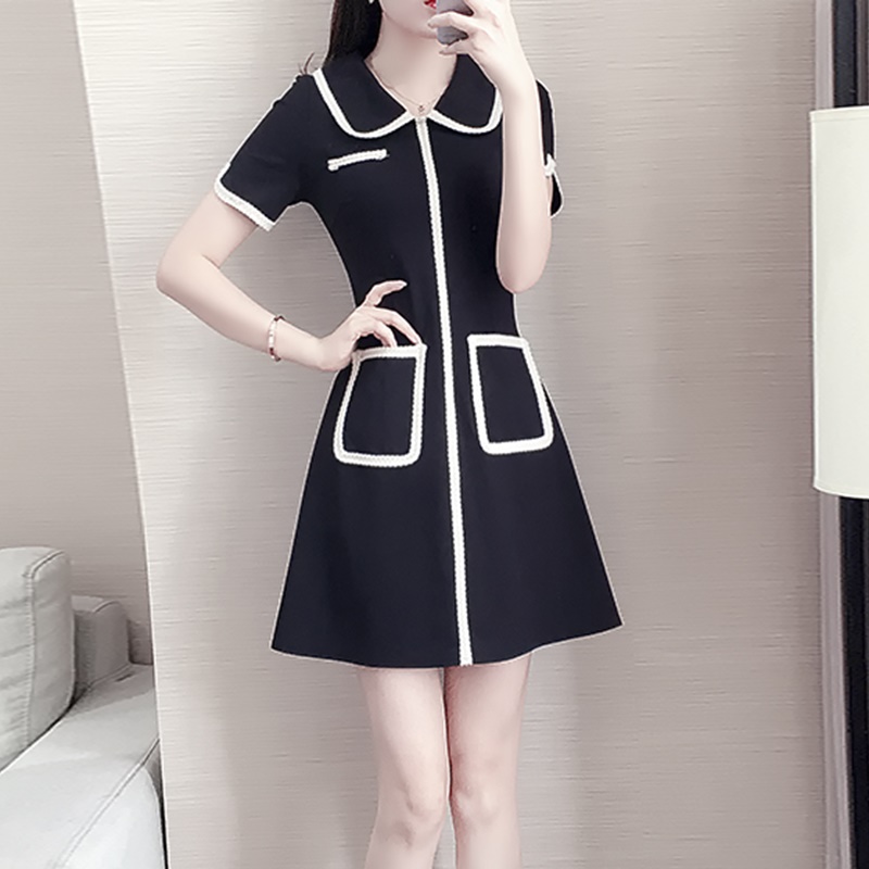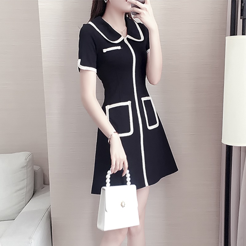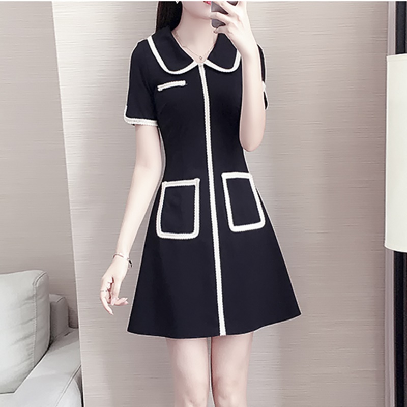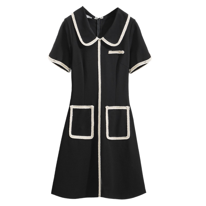 2020新款矮小个子心机小黑裙赫本风娃娃领短袖连衣裙修身显瘦气质