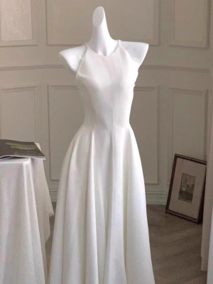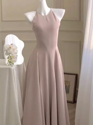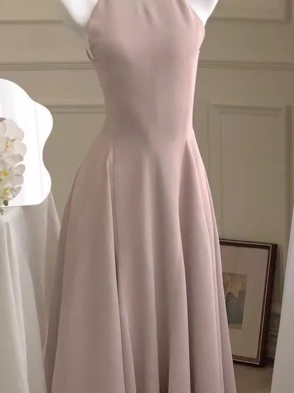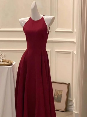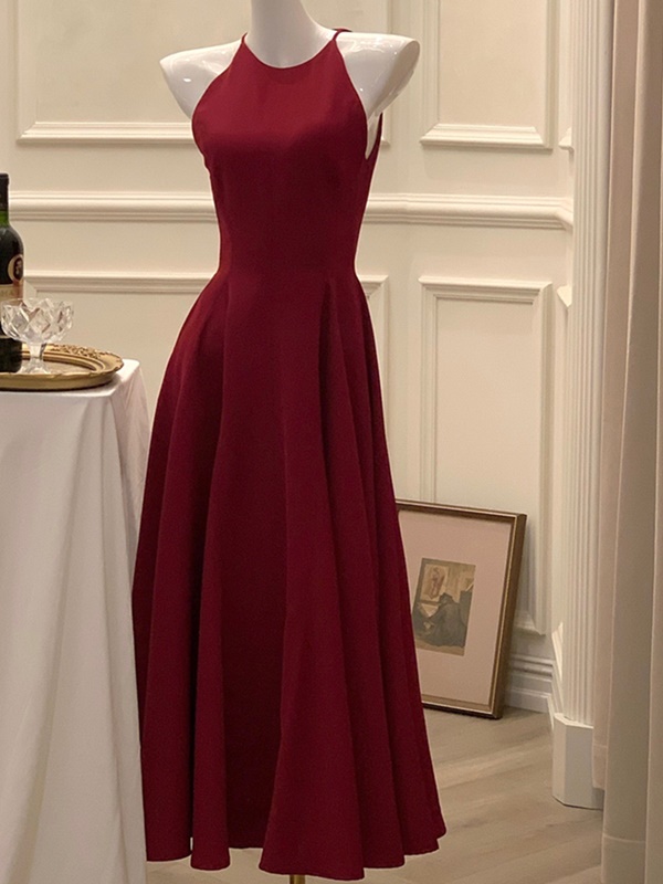 高级感红色挂脖连衣裙女夏吊带法式小众绝美订婚礼服裙赫本小红裙