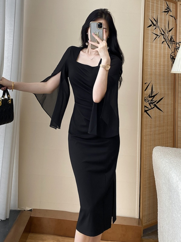 黑色连衣裙2025夏季新款女高级感气质女神范通勤OL显瘦收腰包臀裙