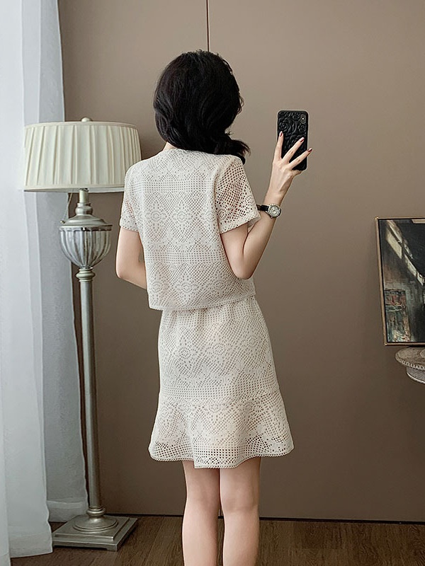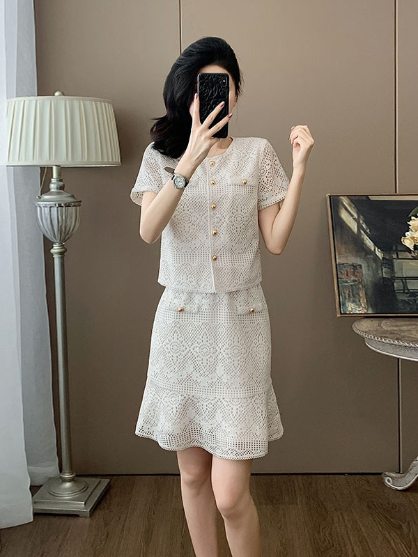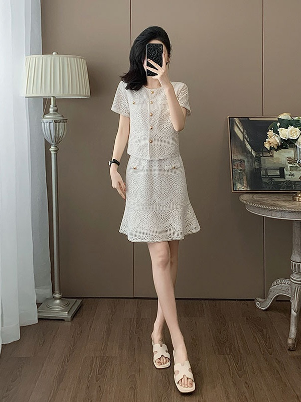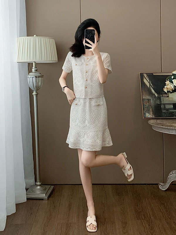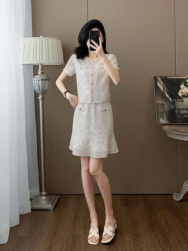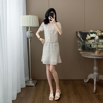 商品名称:镂空蕾丝上衣百搭配半身裙两件套装女气质宽松夏季新款穿搭一整套