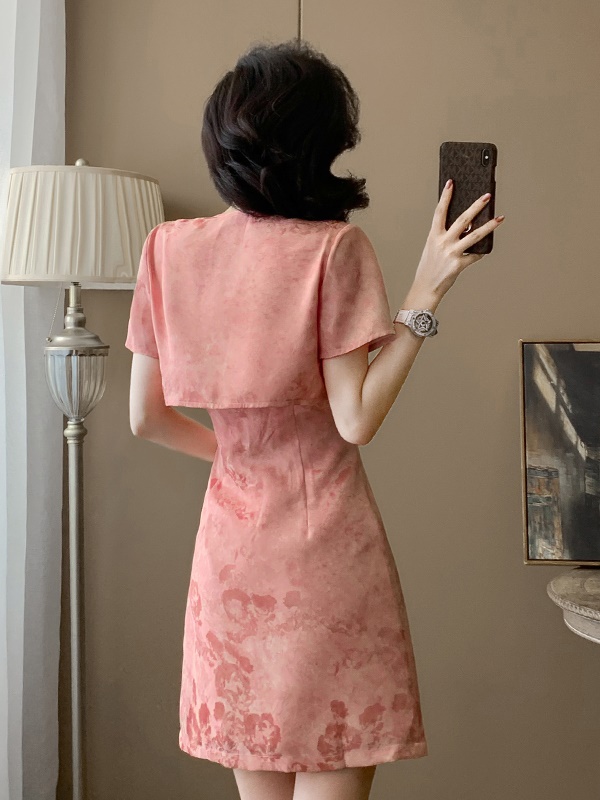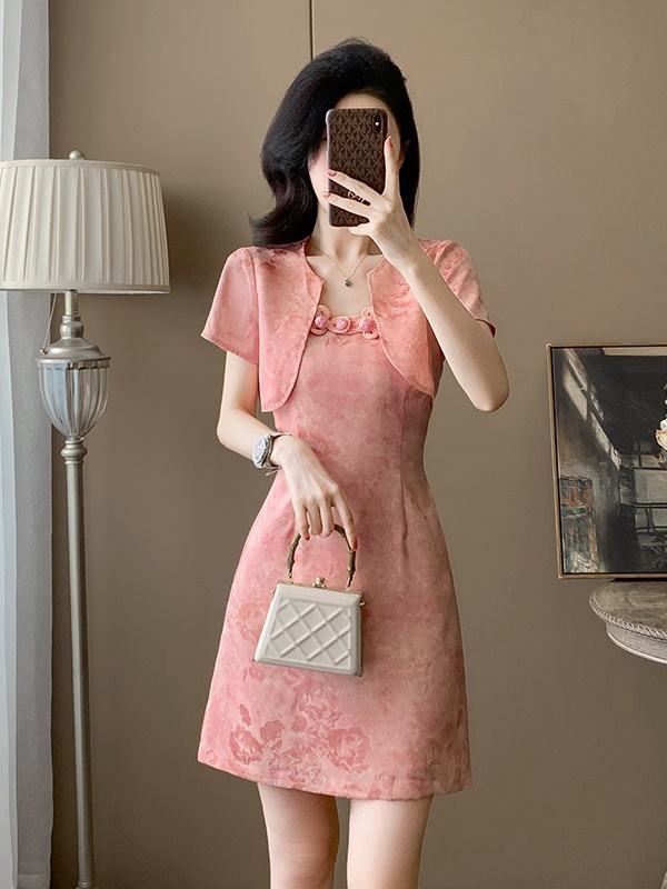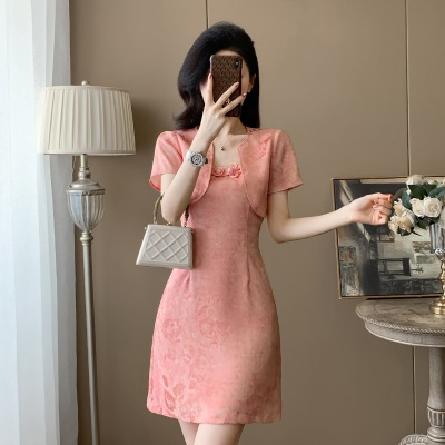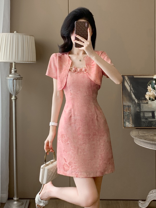 小香风粉色吊带连衣裙女夏季新款高级感气质显瘦马甲裙套装两件套