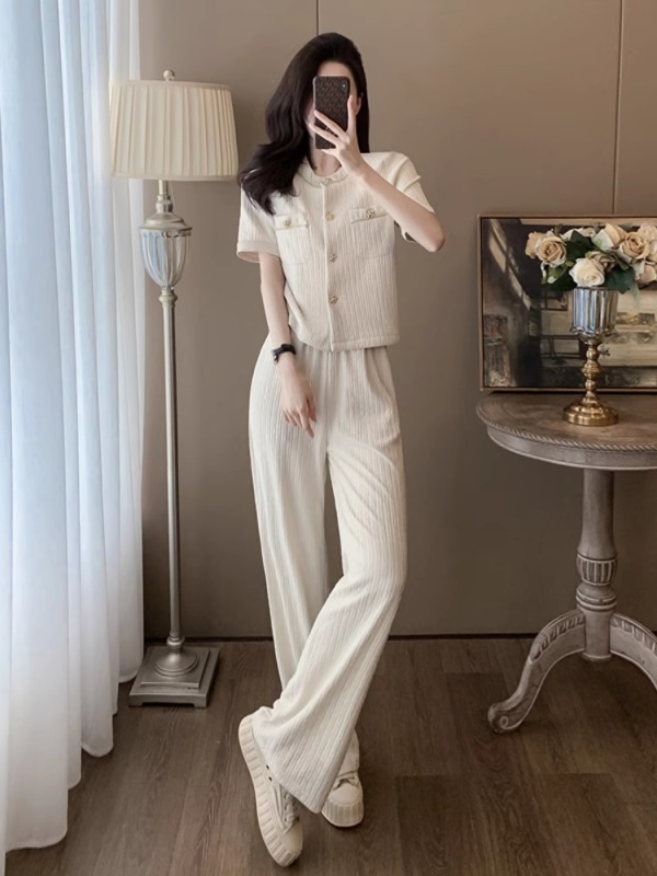 商品名称:小香风休闲时尚职业套装女夏显瘦气质减龄运动阔腿裤两件套高级感