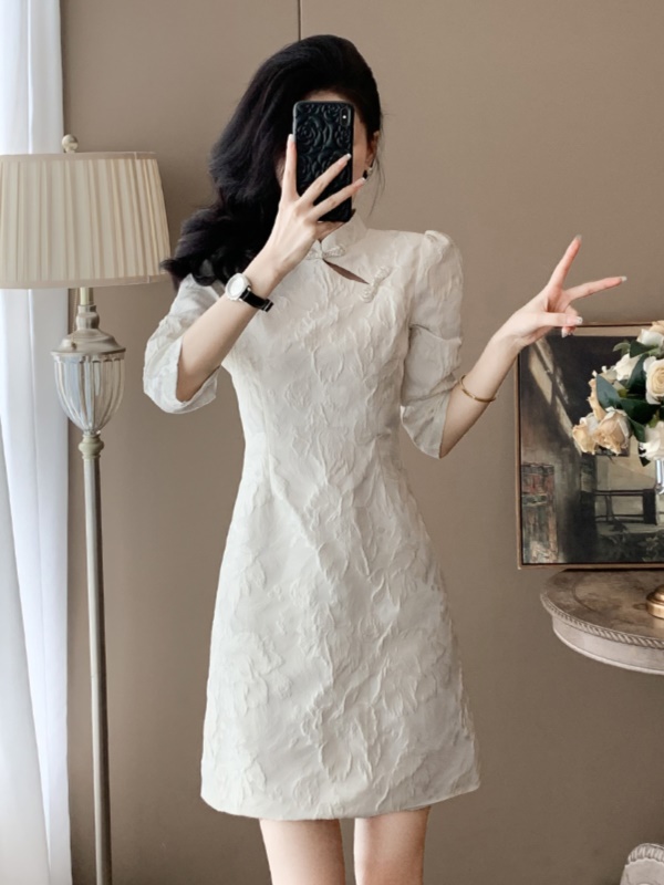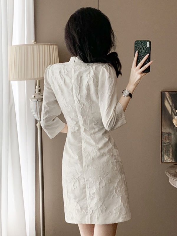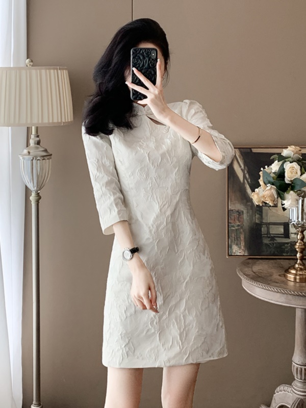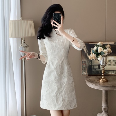 白色新中式国风旗袍连衣裙小个子女春秋新款高级感气质宴会小礼服