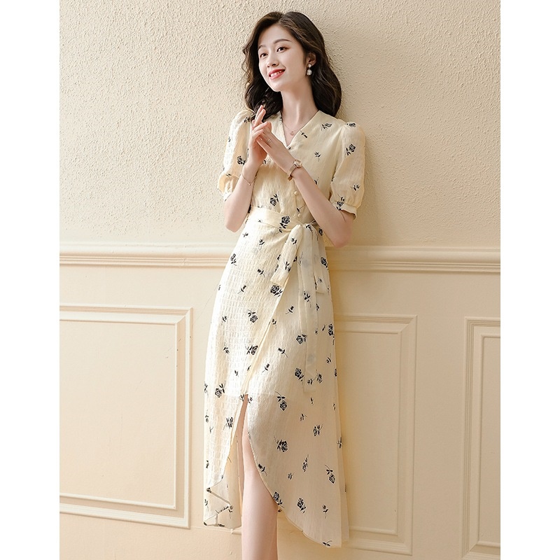商品名称:雪纺连衣裙女夏2025年新款碎花御姐轻熟风修身显瘦气质名媛长裙子
