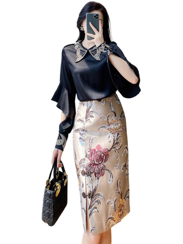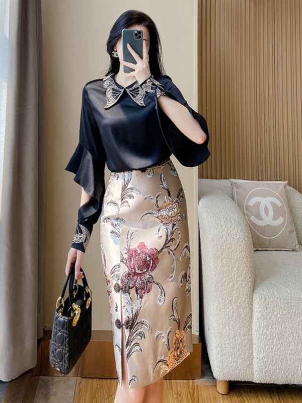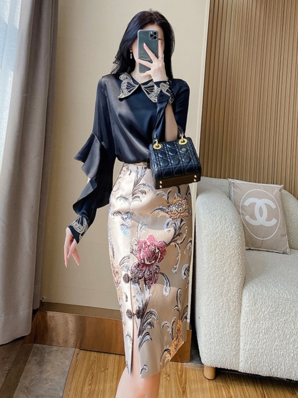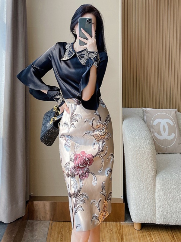 商品名称:高级感包臀半身裙套装裙子2025早秋新款中式国风长袖衬衫两件套裙