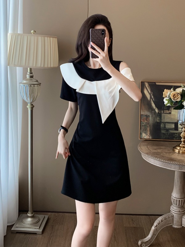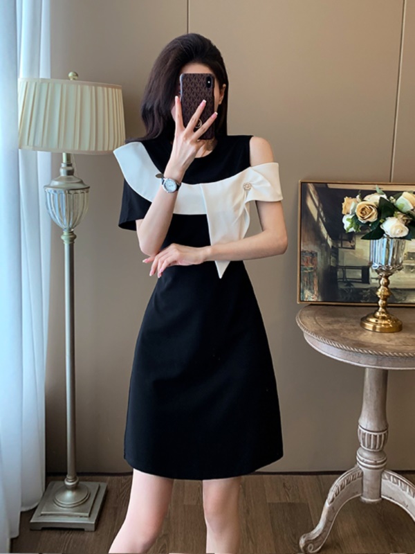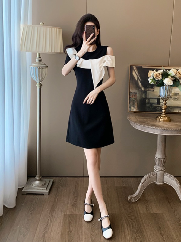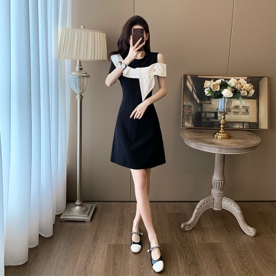 法式气质设计感露肩小黑裙收腰显瘦黑色连衣裙子女夏季高级感礼服