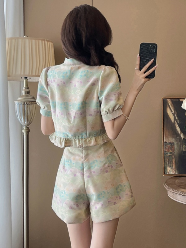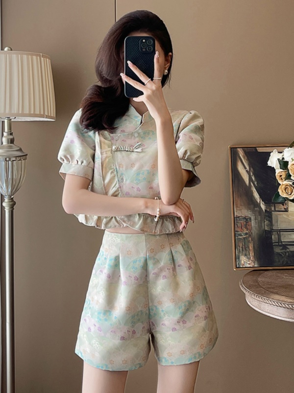 旗袍套装女年轻款改良2023新款夏装新中式国风成套搭配长裙两件套