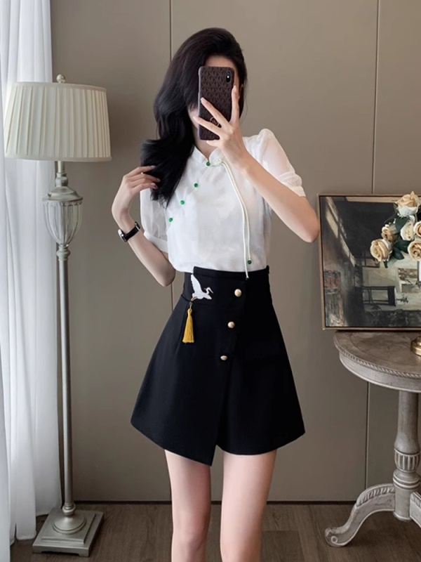 商品名称:夏装搭配一整套洋气送考时尚新中式国风旗袍短袖短裤裙两件套装女