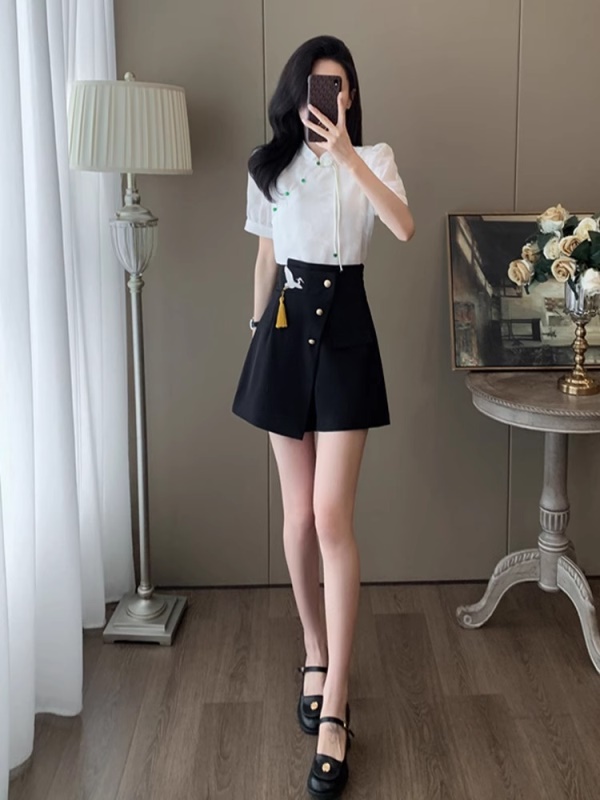[颜色分类:白色短袖+黑色裤裙 尺码:S]