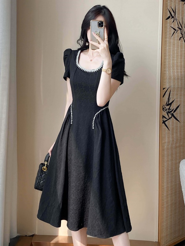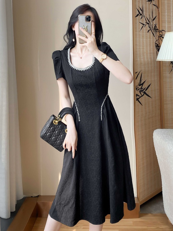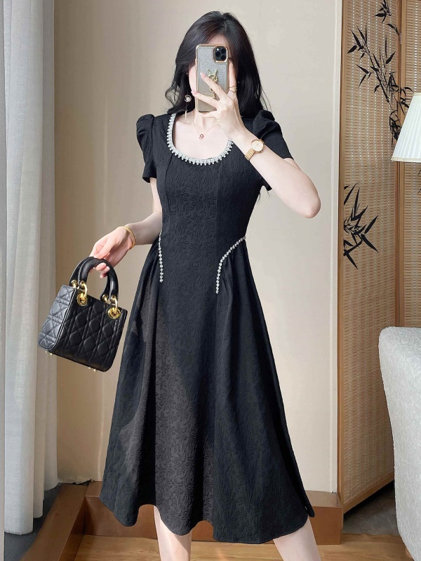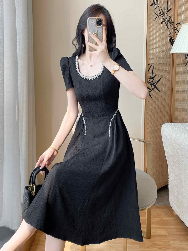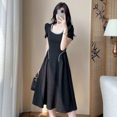 商品名称:法式小香风连衣裙女夏季2025新款高级感气质显瘦赫本风礼服小黑裙