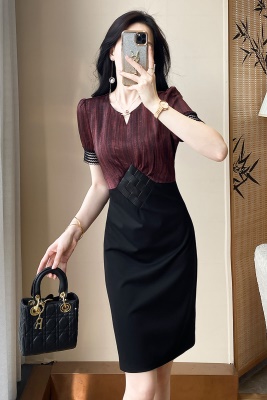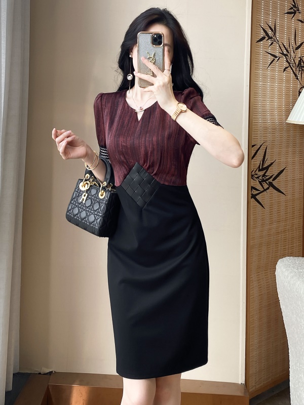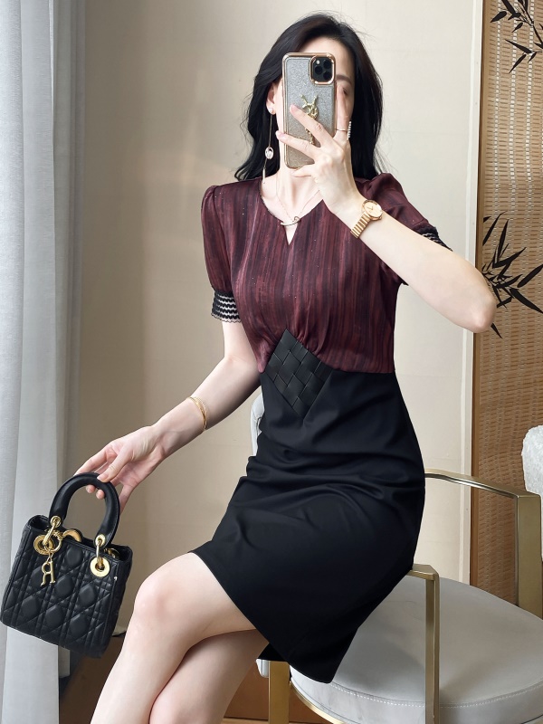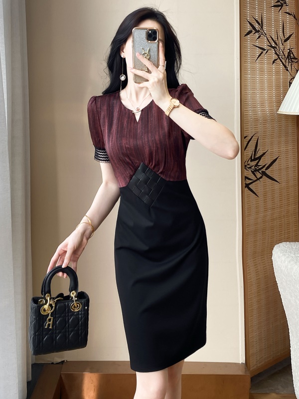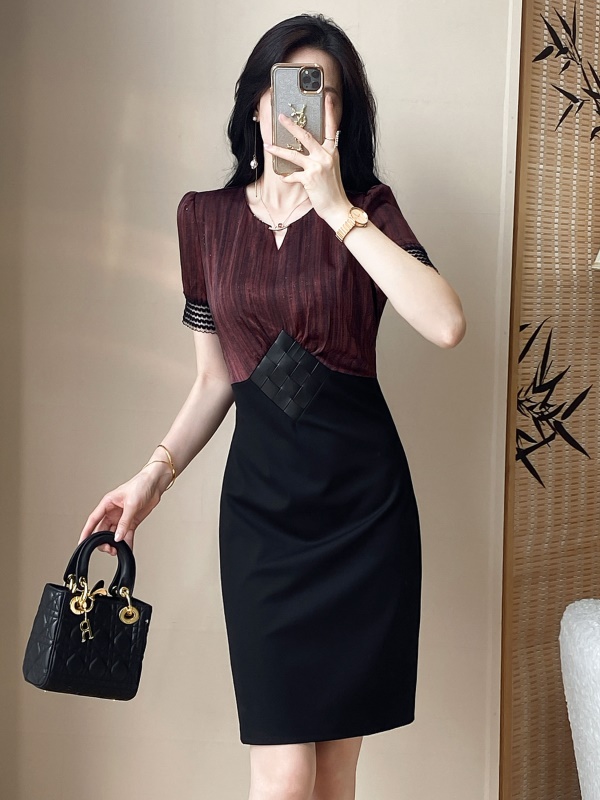 欧货拼接牛仔连衣裙女夏新款气质收腰遮肚显瘦高级感休闲短袖裙子
