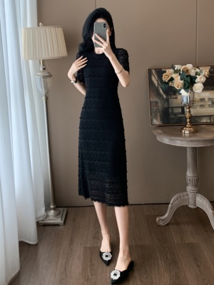 黑色丝绒连衣裙女收腰显瘦包臀名媛气质高端复古晚礼服秋季冬新款