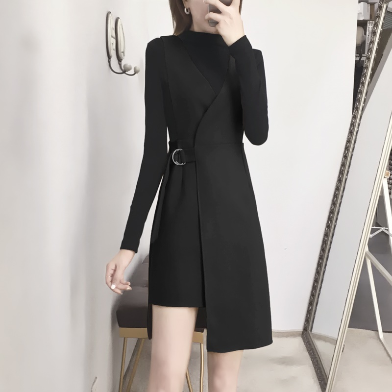 秋冬季新款配大衣长款毛衣裙气质显瘦黑色内搭打底针织连衣裙女装