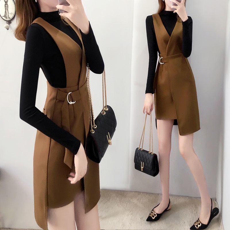 商品名称:两件套马甲裙洋气减龄小香风背带裙女春秋套装名媛内搭背心连衣裙
