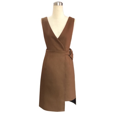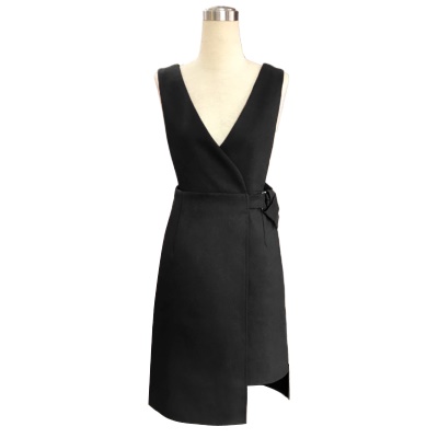 ByYou夏季高端V领吊带连衣裙女收腰设计感拼色假两件蛋糕裙短裙子