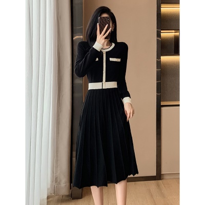 名媛小香风秋冬针织连衣裙高腰a字中长裙气质外穿毛衣配大衣内搭
