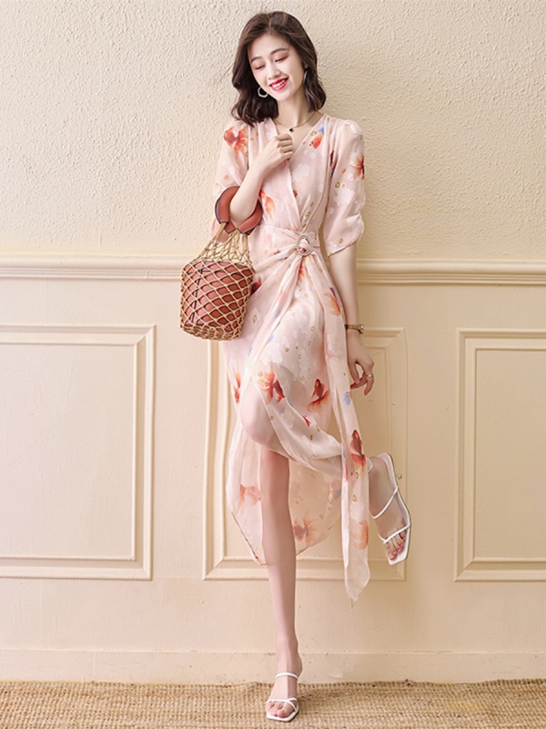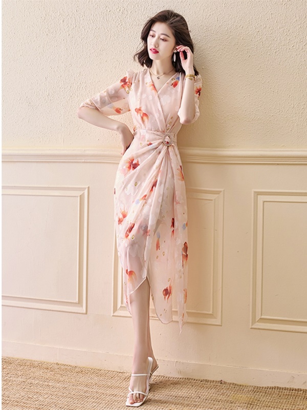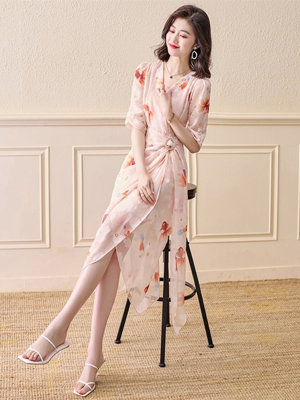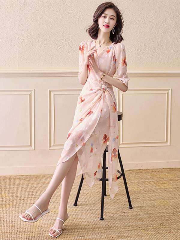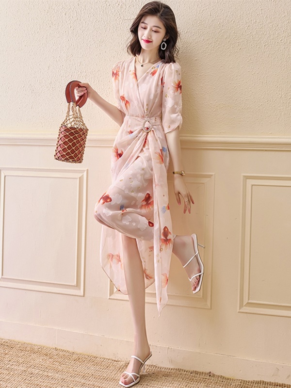 商品名称:碎花一片式连衣裙女夏季2025新款女装气质修身显瘦裙子温柔风仙气