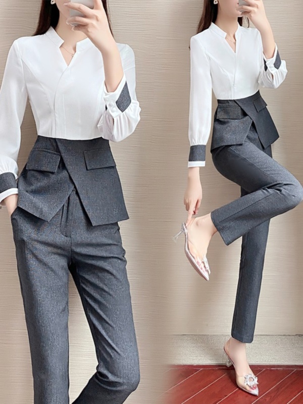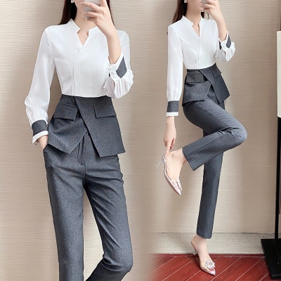 商品名称:春季套装女2025新款秋装时尚洋气干练职业OL长袖衬衫女神范两件套