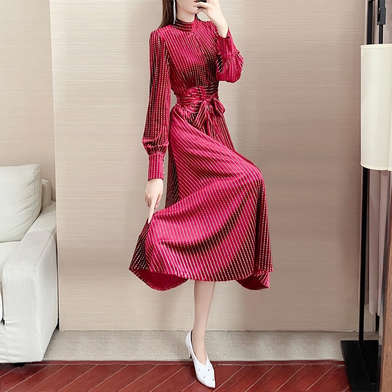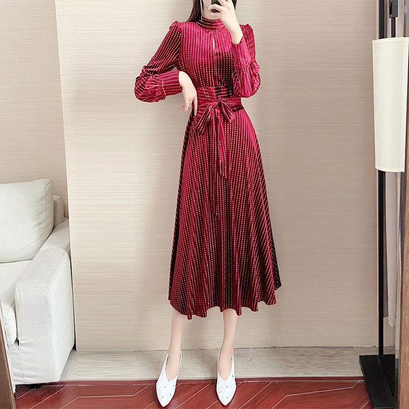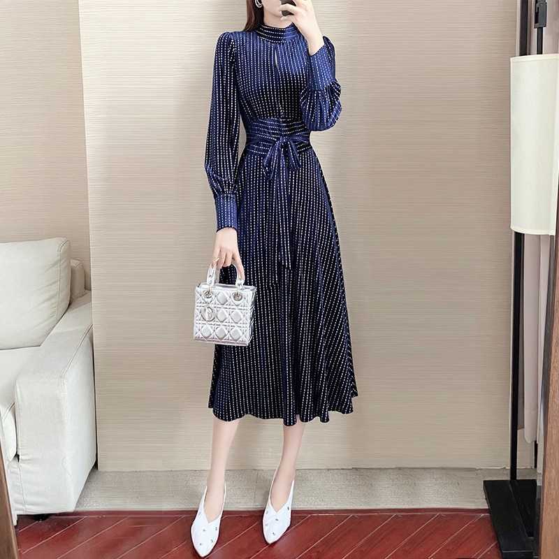 商品名称:名媛气质新款法式连衣裙女神范高端过膝长裙女春秋金丝绒礼服裙子
