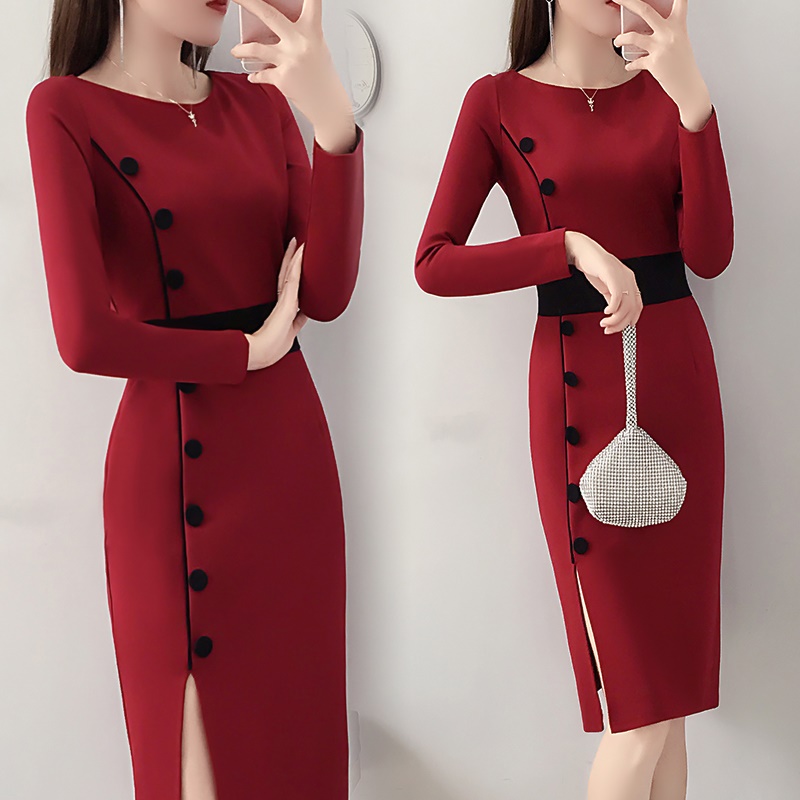 商品名称:高级感高端衣服女气质职场打底裙2025秋季新款小个子红色OL连衣裙