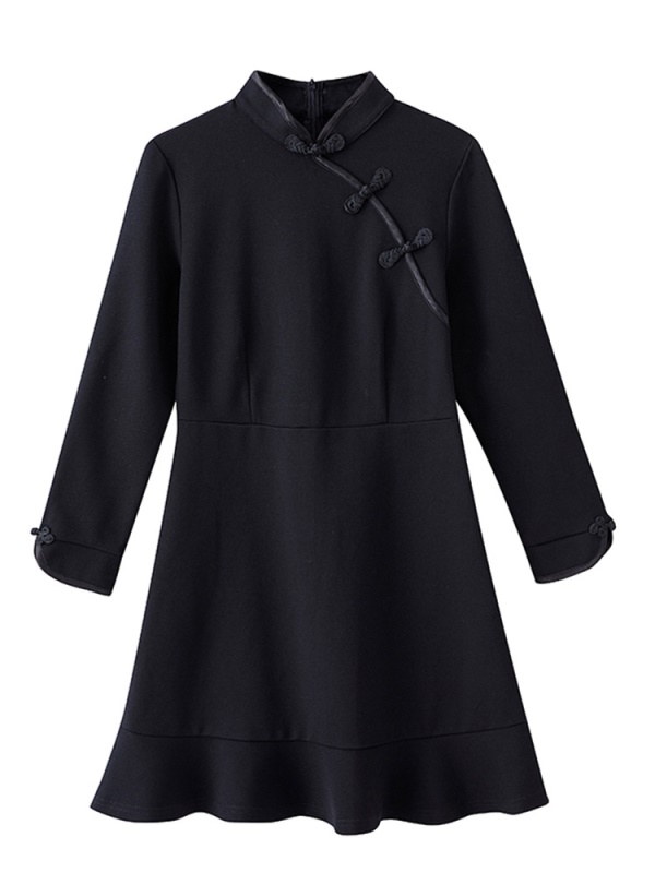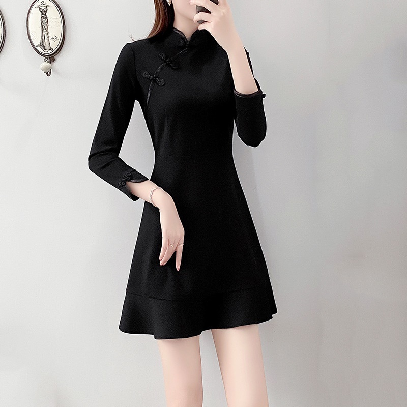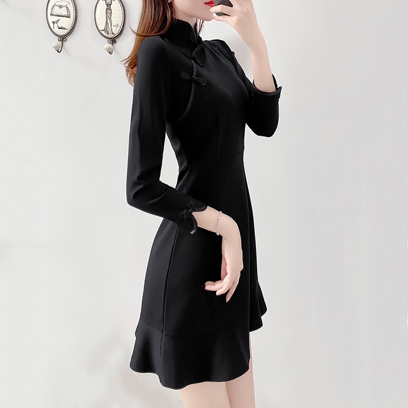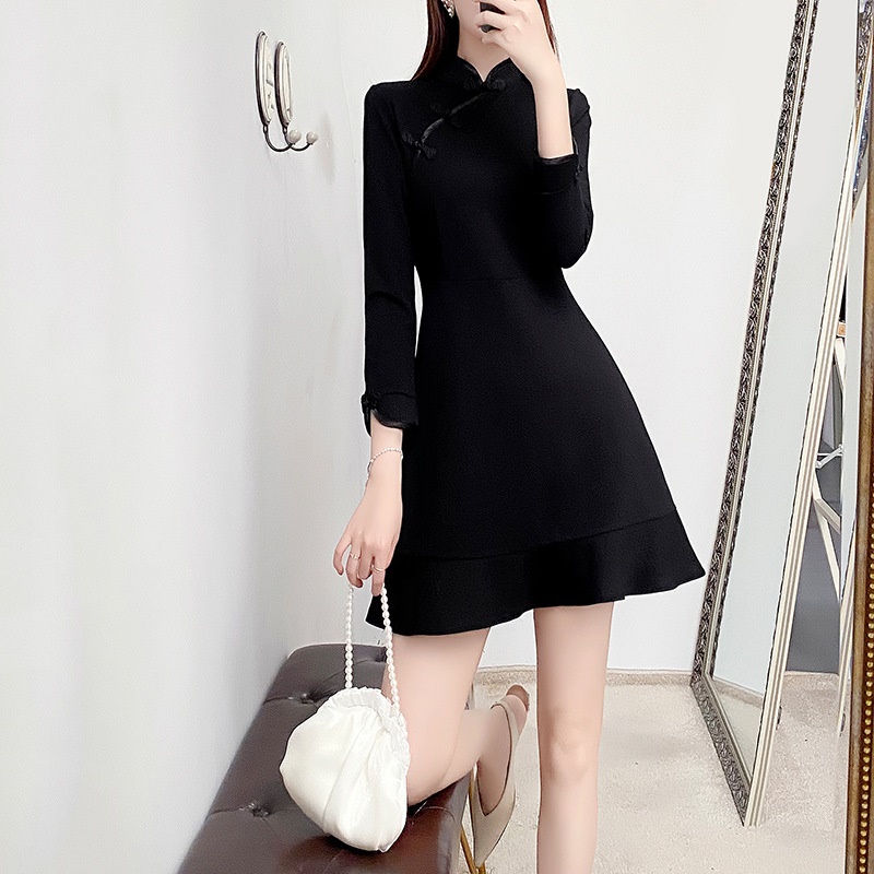 旗袍改良版秋装新款连衣裙法式高级感名媛气质轻奢鱼尾小黑裙秋季