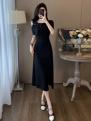 时尚职业气质女神范包臀裙女通勤秋季黑色连衣裙赫本小黑裙高级感