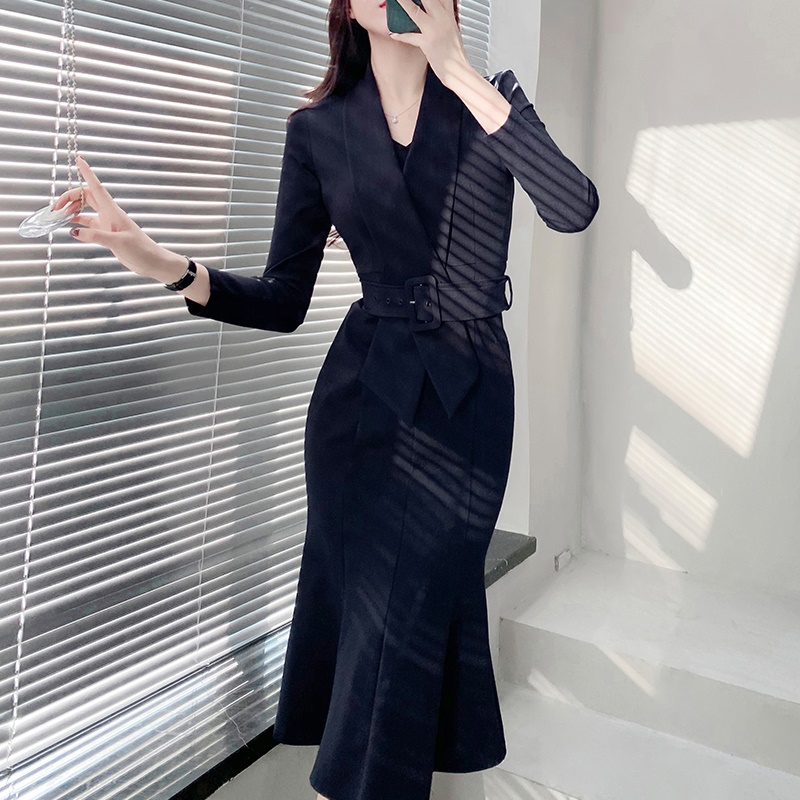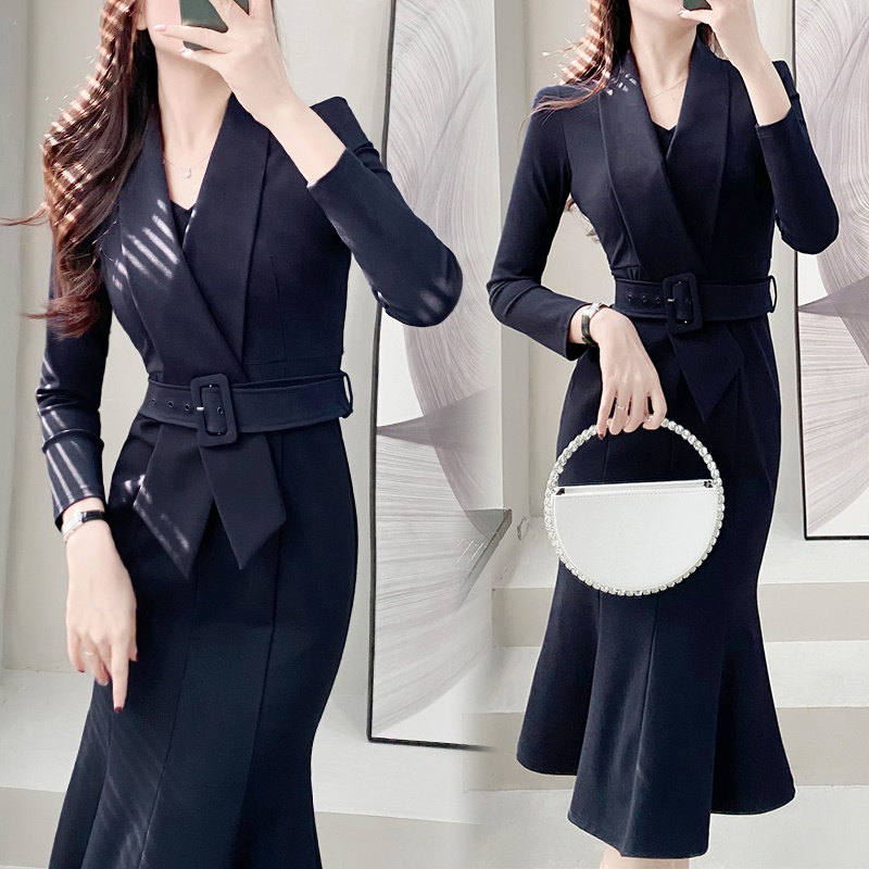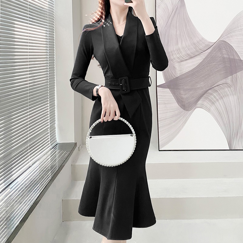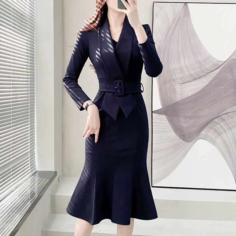 商品名称:西装领连衣裙女收腰显瘦修身鱼尾包臀裙高级感职业气质早秋季新款