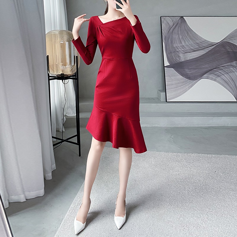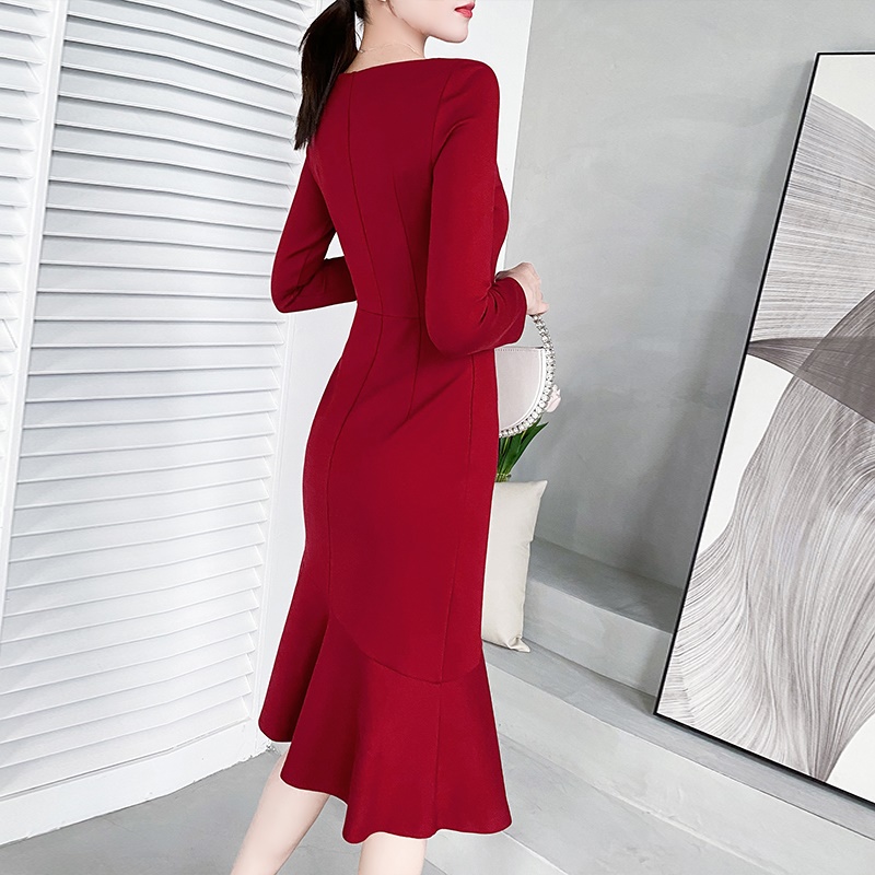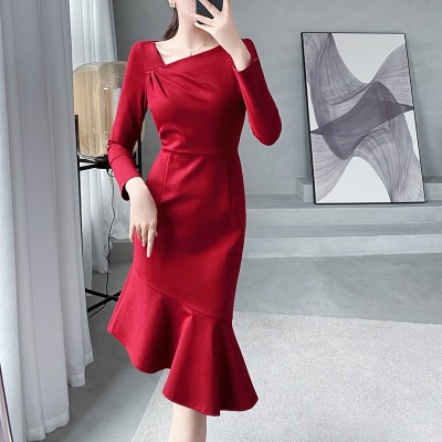 商品名称:2025秋季新款气质高端修身红色鱼尾连衣裙子订婚宴会敬酒晚礼服裙