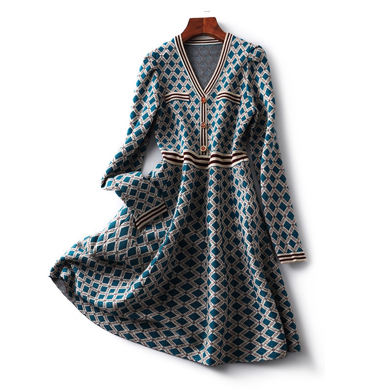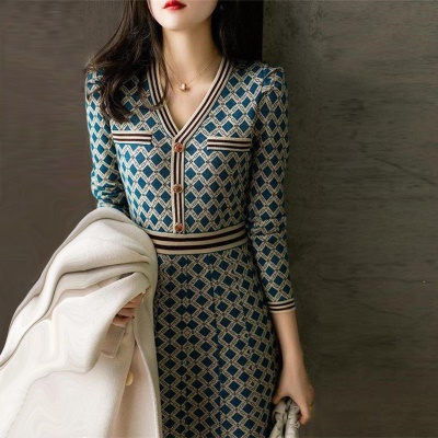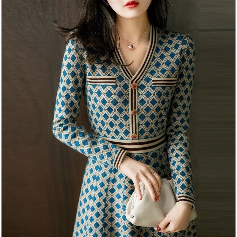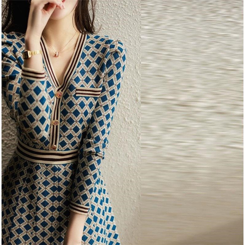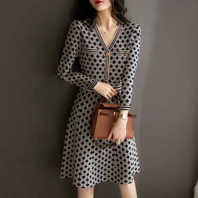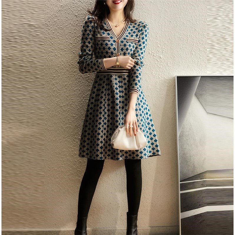 商品名称:早秋款针织A字连衣裙设计感小香风收腰显瘦打底内搭配大衣的裙子