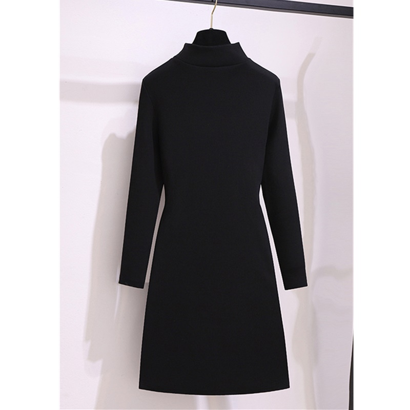 冬季红色过年过膝长裙配大衣的打底内搭高领针织毛衣连衣裙中长款