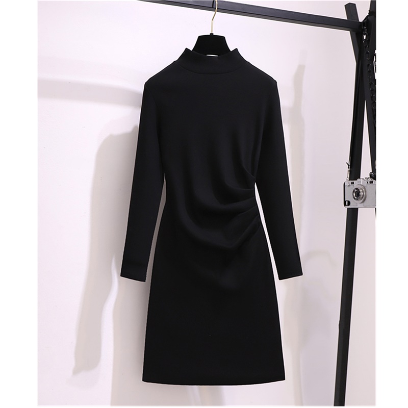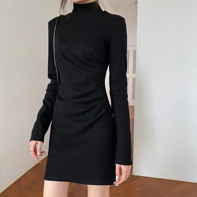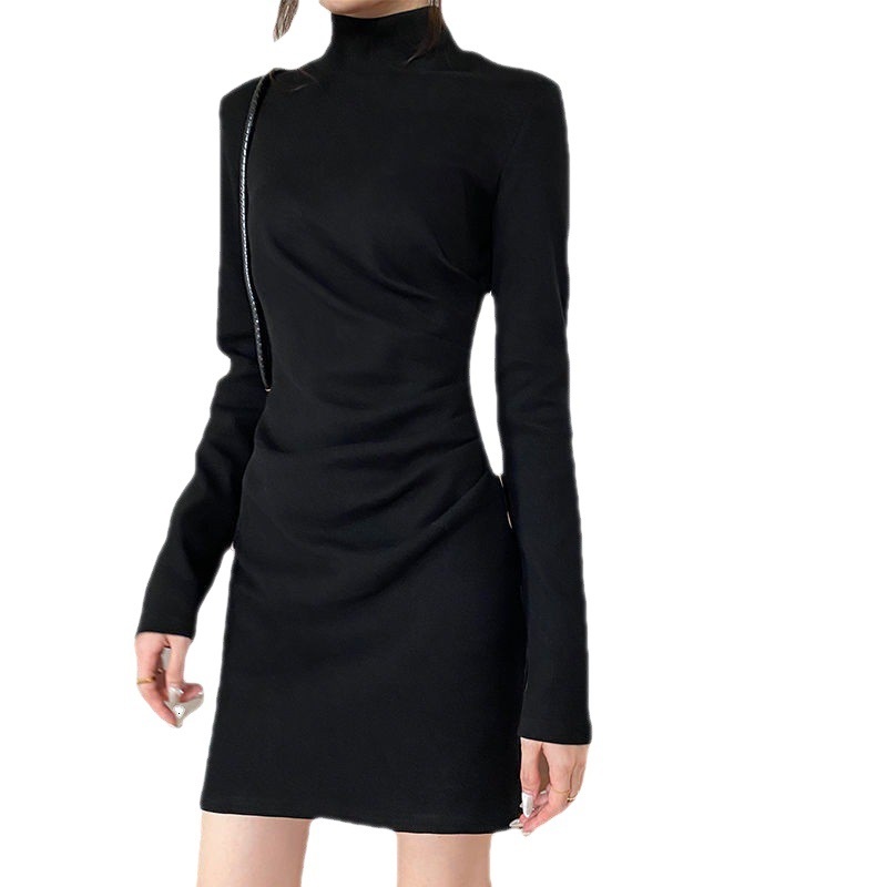 2025新款打底毛衣裙女秋冬季配大衣小个子包臀内搭黑色针织连衣裙