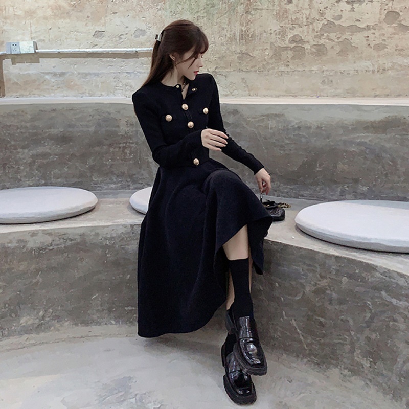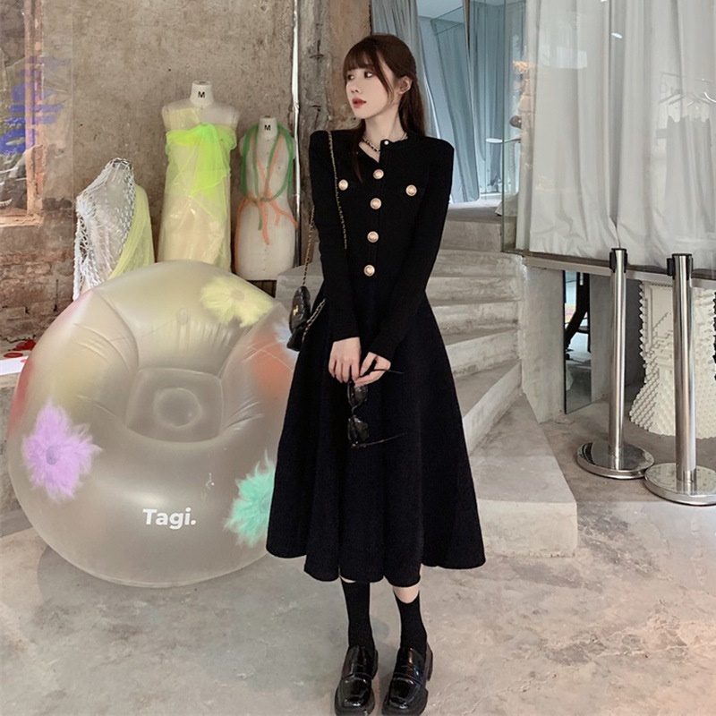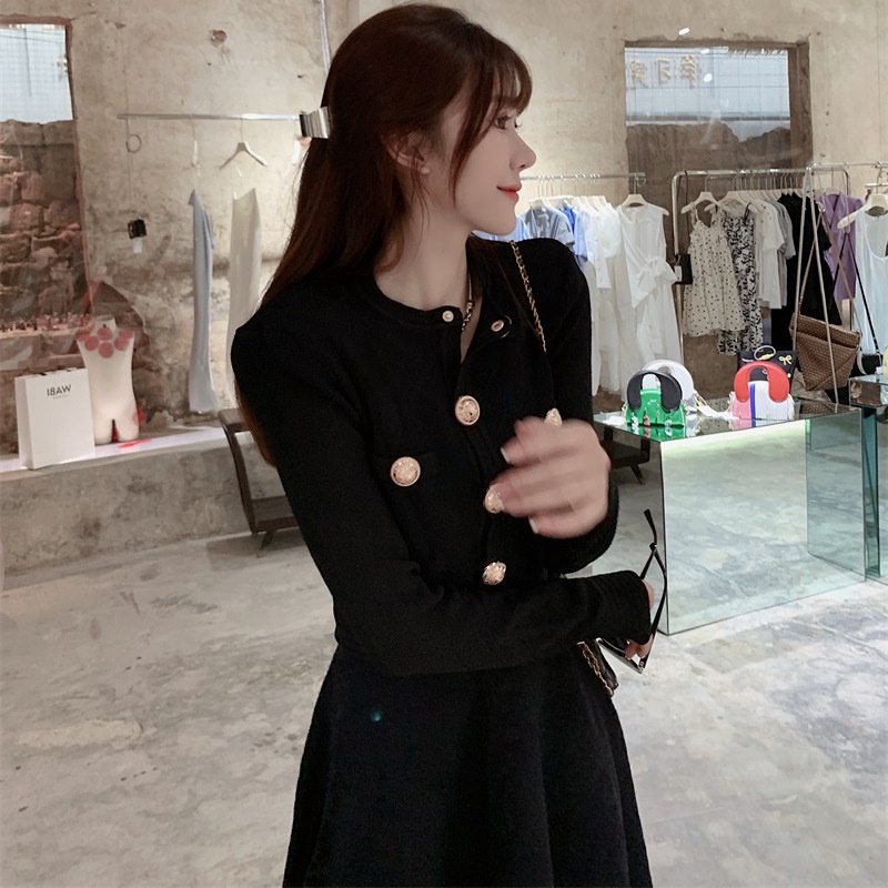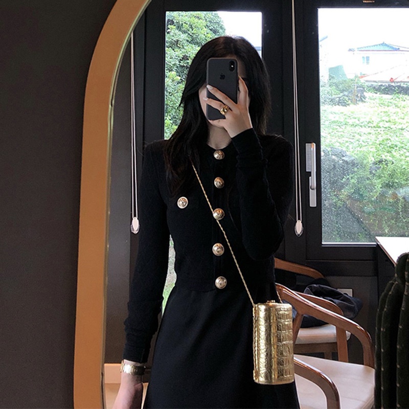 商品名称:2025年秋冬季新款女装小香风长袖打底黑色针织连衣裙两件套装裙子